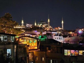 Сидя на террасе с чашечкой турецкого чая, вы сможете насладиться видами на Султанхамет и Мраморное море.